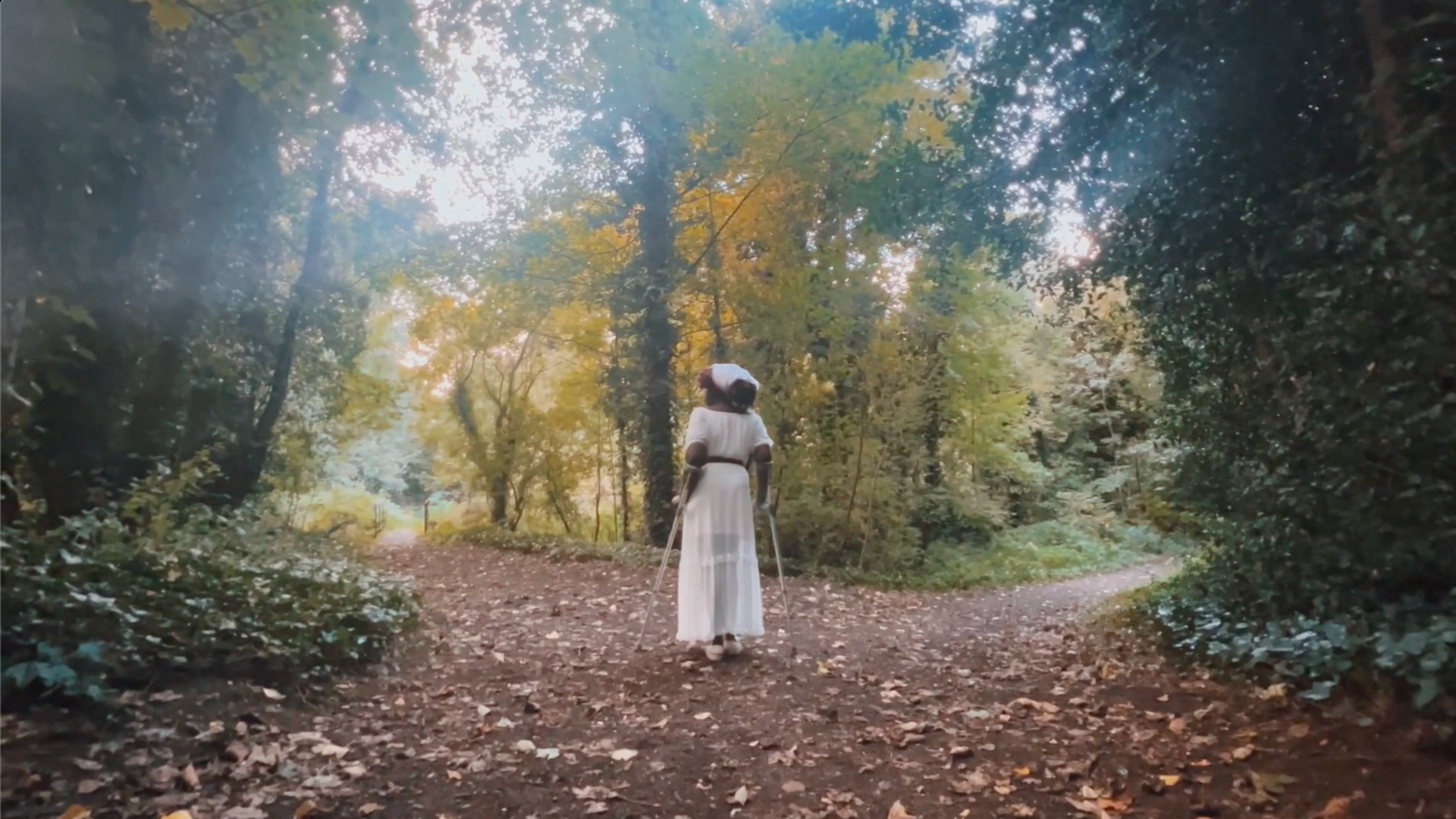 Mojereoma Ajayi-Egunjobi contains the memories of her ancestors, bearing both a lingering trauma passed down through generations and a sense of shared resilience. While moving through a woodland setting, Mojere, on crutches, reflects on the burdens that weigh her down - a relenting permanence, grief, an overwhelming sense of emotional fragility more delicate than the thinnest thread. She is joined in her thoughts by her grandmother, who remains an important figure in the artist’s spiritual life. Dear Omolere (2022) is a powerful performance that speaks to disability, spirituality and the strength that can be found when you allow yourself to be guided by the will of those who came before you; those who overcame and continued their journeys.